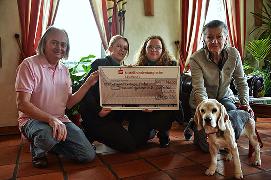 Wir danken dem Hotel Albergo in Berlin-Schönefeld, das für die Weihnachtstombola unseren Verein ausgewählt hatte, um die Tiere in unserem Tierhospiz zu unterstützen. Die feierliche Übergabe des Erlöses der Tombola fand in der Empfangshalle des Hotels Albergo statt. Es waren 443,50 Euro zusammengekommen!