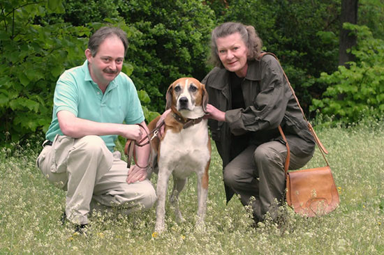 Robin ist ein stattlicher Foxhound-Rüde. Sein schwarz-braun-weißes Fell liegt glänzend über seinem muskulösen Körper, die Augen blicken aufmerksam umher. "Noch vor eineinhalb Jahren war mein Robin ein ängstliches Häufchen Elend", sagt Beate Busse Bequet. Der siebenjährige Rüde hat die ersten fünf Jahre seines Lebens im Versuchslabor einer Uniklinik in Hessen verbracht.